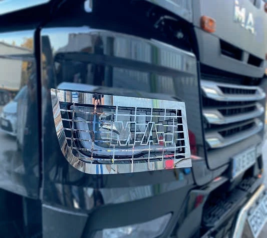 Комплектът декорации за решетка на фаровете за MAN TGX (2021+) придава модерен и завършен външен вид на предната част на камиона. Изработени от устойчиви материали, елементите са предназначени за прецизен монтаж и отлично съответствие с фабричния дизайн, като осигуряват дълготрайност и визуален акцент без компромис с функционалността.